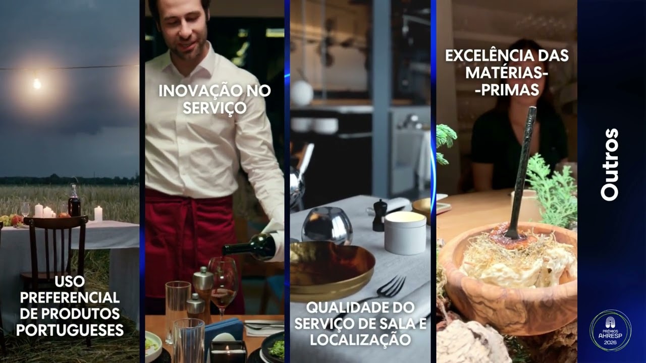 Estão abertas as candidaturas para a 10.ª edição dos PRÉMIOS AHRESP. https://youtu.be/6gjS7TFRBig Na edição de 2026 estarão a concurso as seguintes 10 categorias: Excelência na Restauração - Distingue o estabelecimento e/ou chef que promove uma experiência de elevada...
